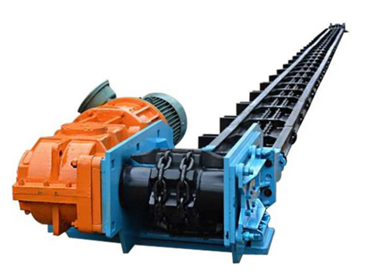 刮板輸送機(jī)是用刮板鏈牽引,在槽內(nèi)運(yùn)送散料的輸送機(jī)叫刮板輸送機(jī)。別稱:溜子;電溜子;刮板輸送機(jī)的工作原理:將敞開的溜槽,作為煤炭、矸石或物料等的承受件,將刮板固定在鏈條上(組成刮板鏈),作為牽引構(gòu)件。當(dāng)機(jī)頭傳動部啟動后,帶動機(jī)頭軸上的鏈輪旋轉(zhuǎn),使刮板鏈循環(huán)運(yùn)行帶動物料沿著溜槽移動,直至到機(jī)頭部卸載。刮板鏈繞過鏈輪作無級閉合循環(huán)運(yùn)行,完成物料的輸送。刮板輸送機(jī)可用于水平運(yùn)輸,亦可用于傾斜運(yùn)輸。